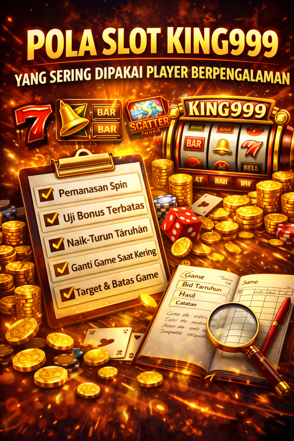 “Pola Slot KING999 yang Sering Dipakai Player Berpengalaman” pada dasarnya adalah pola disiplin: pemanasan spin, perubahan taruhan yang bertahap, pembagian blok putaran, keputusan ganti game saat kering, serta batas profit dan batas rugi yang jelas. Tidak ada rumus yang menjamin kemenangan, tetapi pola yang rapi bisa membuat sesi bermain lebih terukur, nyaman, dan tidak menguras saldo karena keputusan impulsif.